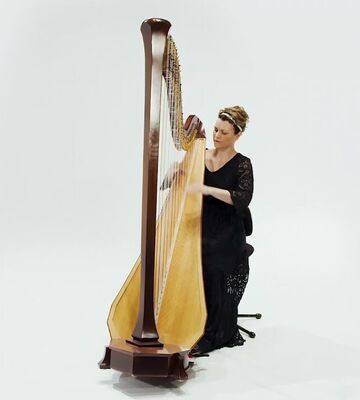 Harpan kemur úr fjölskyldu strengjahljóðfæranna, en á hana er leikið með fingrunum og strengirnir plokkaðir. Harpan hefur 47 strengi sem hægt er að stilla með aðstoð 7 fótsiga. Harpan gæðir tónlistina oft ævintýralegum blæ þegar fingrunum er rennt upp og niður eftir öllum strengjunum. Það er hægt að spila flókin lög á hörpuna, en þá þarf hörpuleikarinn oft að breyta stillingu strengjanna með fótstigunum.